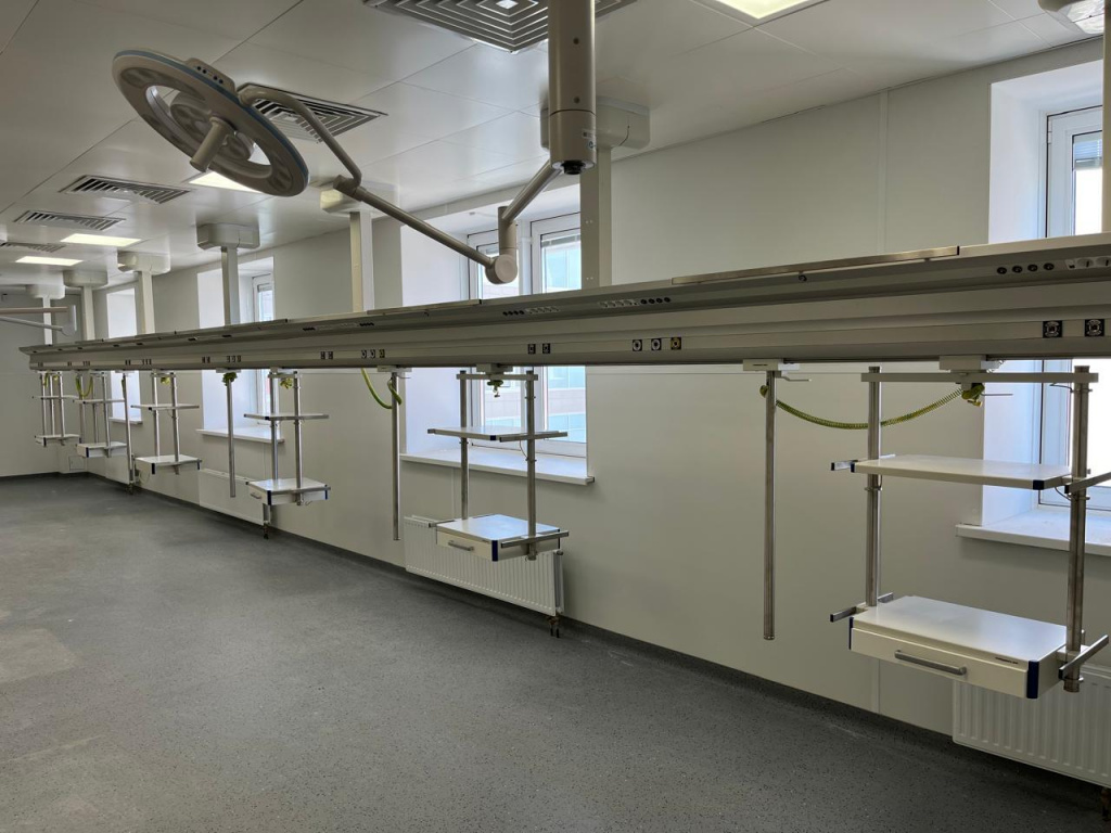 Ведущими специалистами компании АРАЛ ИНЖИНИРИНГ было смонтировано почти 200 единиц потолочных и настенных консолей для операционных, палат интенсивной терапии и палат в стационаре.